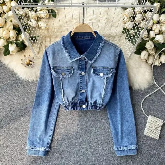 Our denim jacket boasts a tailored fit with a cinched, elastic waist, creating a flattering high-waist silhouette. The single-breasted closure and turn-down collar add a touch of elegance to this streetwear item. It’s crafted from a comfortable blend of cotton and rayon, making it ideal for all-season wear. With a versatile short length and full long sleeves, it’s perfect for layering over your favorite outfits for a variety of occasions, from casual outings to more dressed-up events.