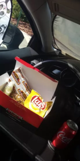I love this tray! Where I work, days can get hectic to the point where I simply refuse to eat my lunch inside so I go to my car (mental breakaway). I have a sliding armrest/console but it got annoying trying to cut up my hibachi-style teriyaki chicken from Tokyo Grill on it. I did an internet search and found this! No regrets! Note: if you have a steering wheel cover on, this won’t work. Bright side: it’s easy to put on your steering wheel and yes you will doubt yourself and think you can’t apply pressure or you’ll drop your food and drink in your lap, lol. This tray is sturdy enough to cut up food on it! Now, I have to be honest, I only used the “cup holder/placement” feature once.......I prefer the security of my cup holders in my car (‘17 Honda Civic). So where the cup I supposed to go, I put my phone there to watch YouTube while I eat my lunch (propped up by a popsocket). It works perfectly! Oh, and if you put this on your steering wheel and it’s at an angle, just take it off and try again. It’ll happen when you’re trying to put it on in a rush or just aren’t paying attention. :)