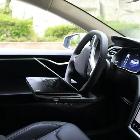 I am a manager that finds himself in the field quite a bit. I ordered this on a whim, and have since ordered a few for fellow managers, as gifts. The desk has fit almost every vehicle I have tried it in, and is just the right size for an iPad Pro in a Belkin Keyboard case. I have managed a laptop a few times as well. Oh, and you can eat lunch off of it as well, if you'd like. Just remove before driving. You have been warned.