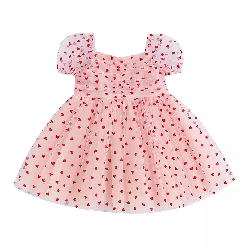 Welcome to the world of enchanting fashion with our Charming Heart Print Tulle Dress, exclusively designed for baby girls. This dress is not just a piece of clothing; it’s a gateway to creating precious memories for your little one on special days. Whether it’s Valentine’s Day, a family gathering, or just a day out, this dress guarantees your baby girl will look her best and feel comfortable.