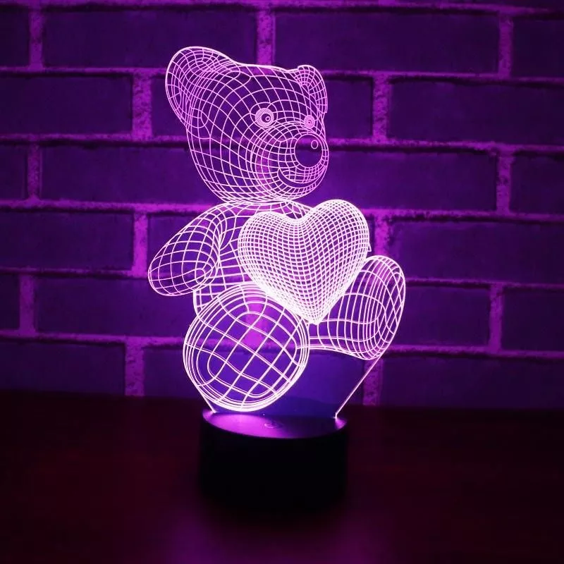 Experience the magic of the 3D Love Bear LED Night Light. Bring a touch of love and light into your life or gift it to someone special. Order now and transform your space with this enchanting light!