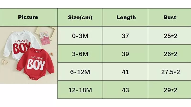 Embrace the joy and love of Valentine’s Day with our Baby Boys Long Sleeve Romper. Its charming design, combined with practicality and comfort, makes it a must-have in your baby’s wardrobe. Order now and let your little one enjoy the warmth and style of this adorable outfit!