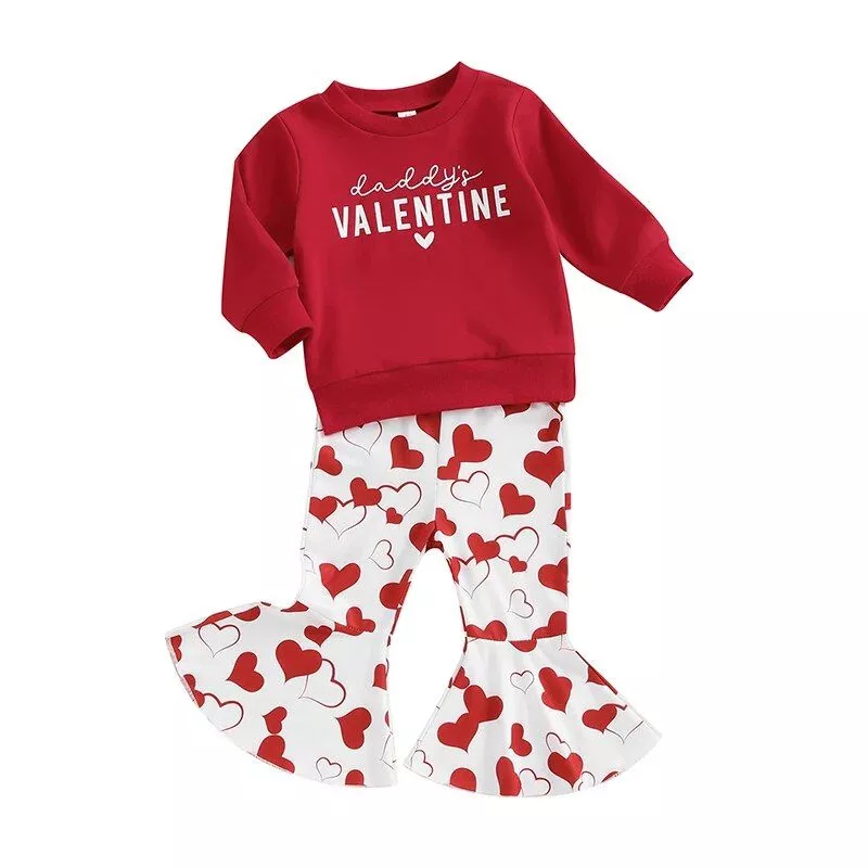 What sets this outfit apart is its charming blend of style and comfort. The “Daddy’s Valentine” print adds a unique and loving touch, making it not just an outfit, but a special expression of the bond between father and daughter. The careful selection of materials ensures that your little girl stays comfortable while looking absolutely adorable.