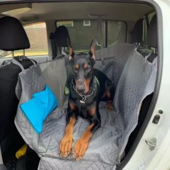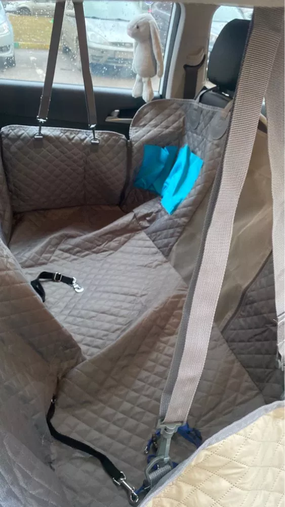 This dog cover is great! It fits exactly and the clips are really strong. Its adjustable so my dog wouldn't be able to pull it down!. The bottom is made from special rubber so the dog dont slip during driving.