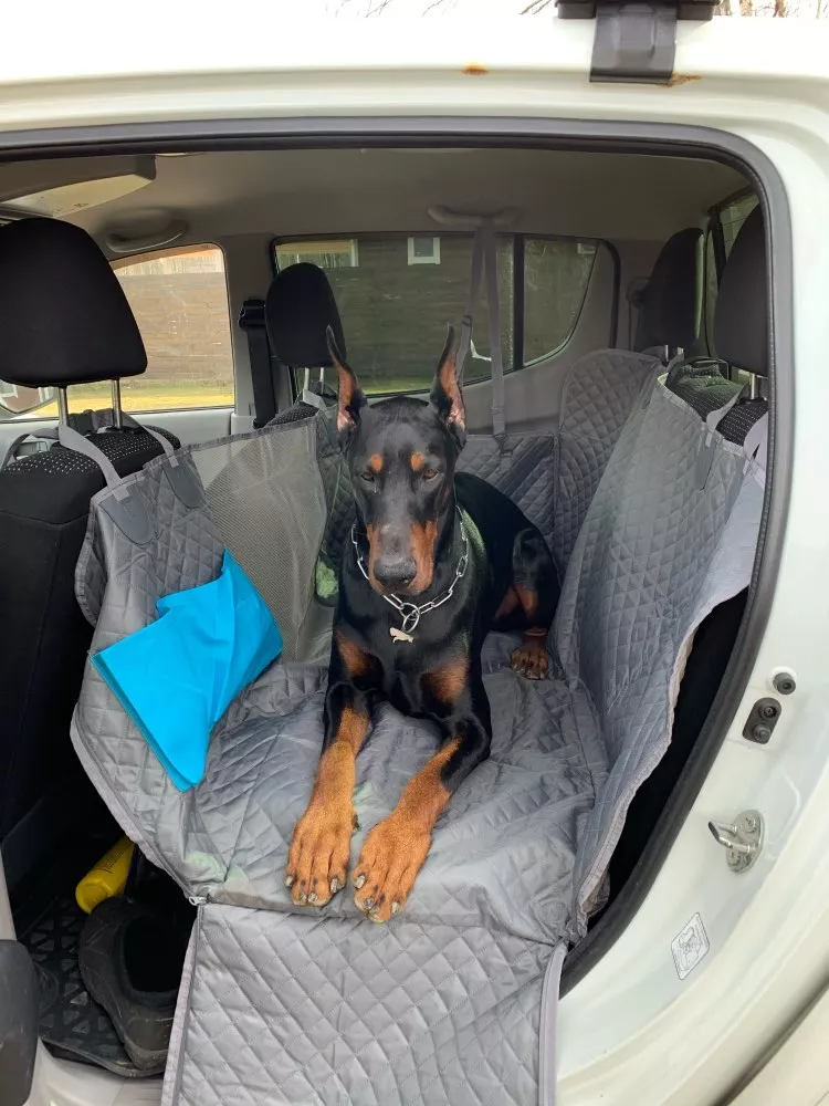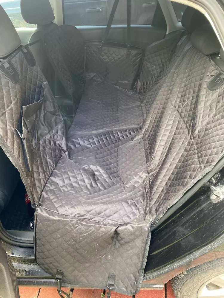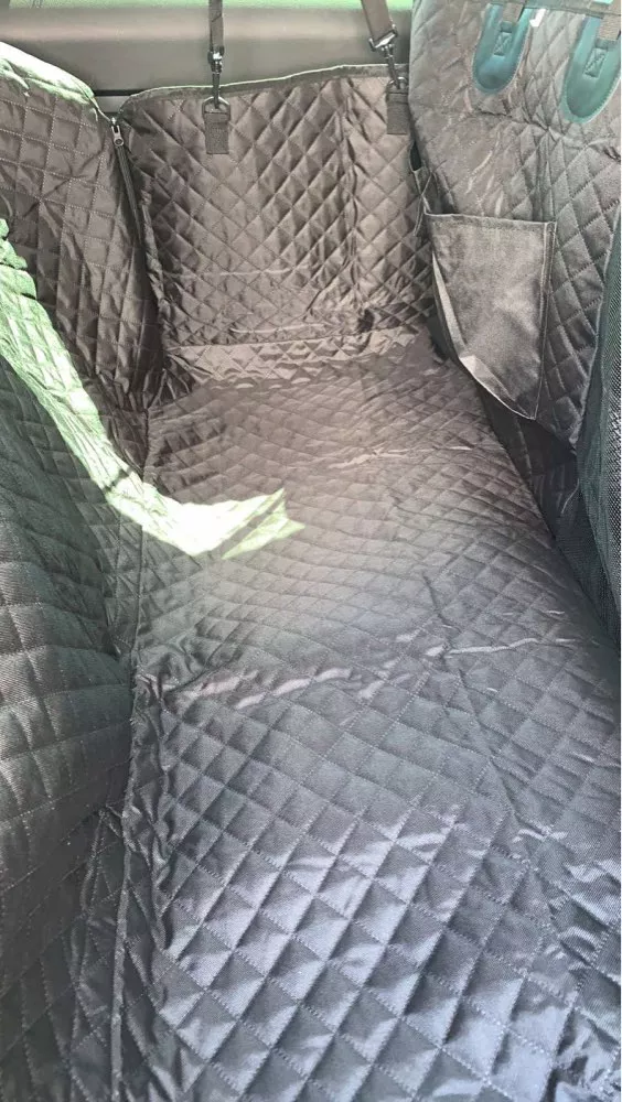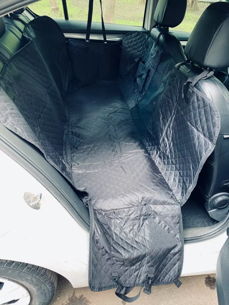 I am happy with my purchase and definitely recommend this product! Fits backseat nicely, and my dog can't chew off the straps - exrea star for the durability.