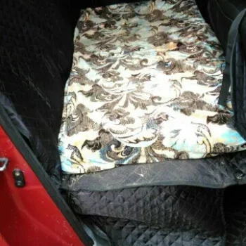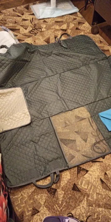 Great thing. Fits great into Polo sedan, and thick enough to keep the Stafford busy chewing the zippers.