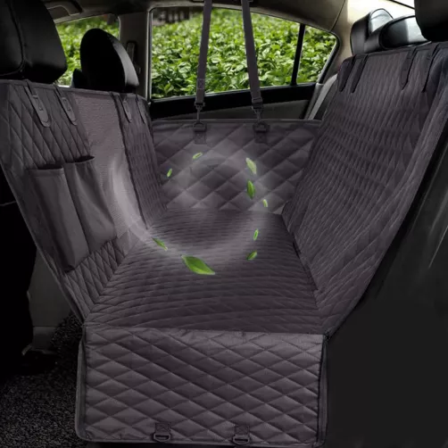 Our seat cover is designed with care, for multiple layers of love. Built with a waterproof coating, 600D polyester Oxford fabric, thermoplastic polyurethane, soft cotton, and a non-slip net, your pooch can lounge in supreme comfort, whether it’s hours on the road or just a couple of minutes. The hammock-like design features quilt-stitch detail and is super breathable, making it great for any type of weather.