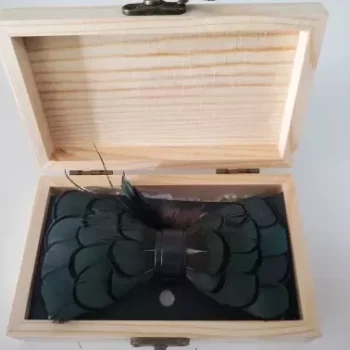 Don’t miss the opportunity to own or gift this exquisite Green Feather Bow Tie & Brooch Set. It’s not just an accessory; it’s a statement. Perfect for those who appreciate style and originality. Order now and step up your fashion game for any formal event or surprise your loved one this Valentine’s Day with a gift they’ll always cherish.