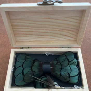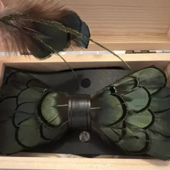 Our Green Feather Bow Tie & Brooch Set stands out for its originality and style. The natural feather material brings a touch of nature to your wardrobe, making it more than just an accessory but a piece of art. It’s not only a great choice for your personal collection but also makes a thoughtful and impressive gift, especially with Valentine’s Day around the corner. The ease of pairing it with different outfits makes it a versatile addition to your wardrobe.