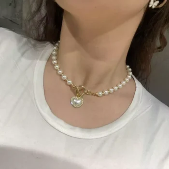 What sets this necklace apart is its unique blend of vintage design and contemporary fashion. The heart-shaped pearl pendant is not just a piece of jewelry; it’s a statement of fashion and elegance. The simple OT buckle clavicle chain is both stylish and practical, making it easy to wear and adjust. It’s not just an accessory; it’s a fashion statement that speaks volumes about your taste and style.