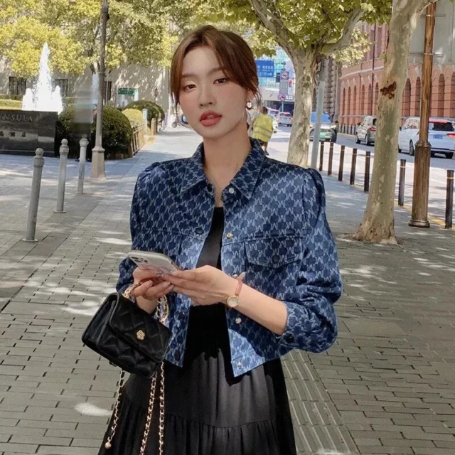 Step into the new season with confidence in our chic denim jacket, adorned with an argyle print that’s as unique as you are. This carefully constructed coat boasts a high-waist cut, full-length sleeves, and a classic turn-down collar – all brought together with a smart single-breasted closure. The elegant, straight-type clothing style, complemented by decorative buttons, pockets, and a hint of vintage charm, elevates your look effortlessly.