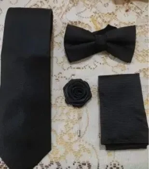 Each set includes a meticulously crafted necktie, a stylish bow tie, a matching handkerchief, and an ornate brooch to complete your look. Made from high-quality polyester with a luxurious silk feel, these accessories promise both comfort and durability. Available in a wide range of colors, these sets cater to individual preferences while maintaining a timeless charm.