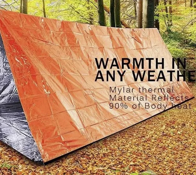 In the most dire of situations, the vivid orange color of our Emergency Sleeping Bag can act as an emergency signal to rescue crew in the air. You can use the bag to form a visible 79 x 35.5 in (L x W) signal to anyone to see. This sleeping bag is an absolute necessity for camping and outdoor adventures: it not only keeps you warm at night as a sleeping space and protected from extreme elements, but can save your life in life-rescue situations and emergencies.