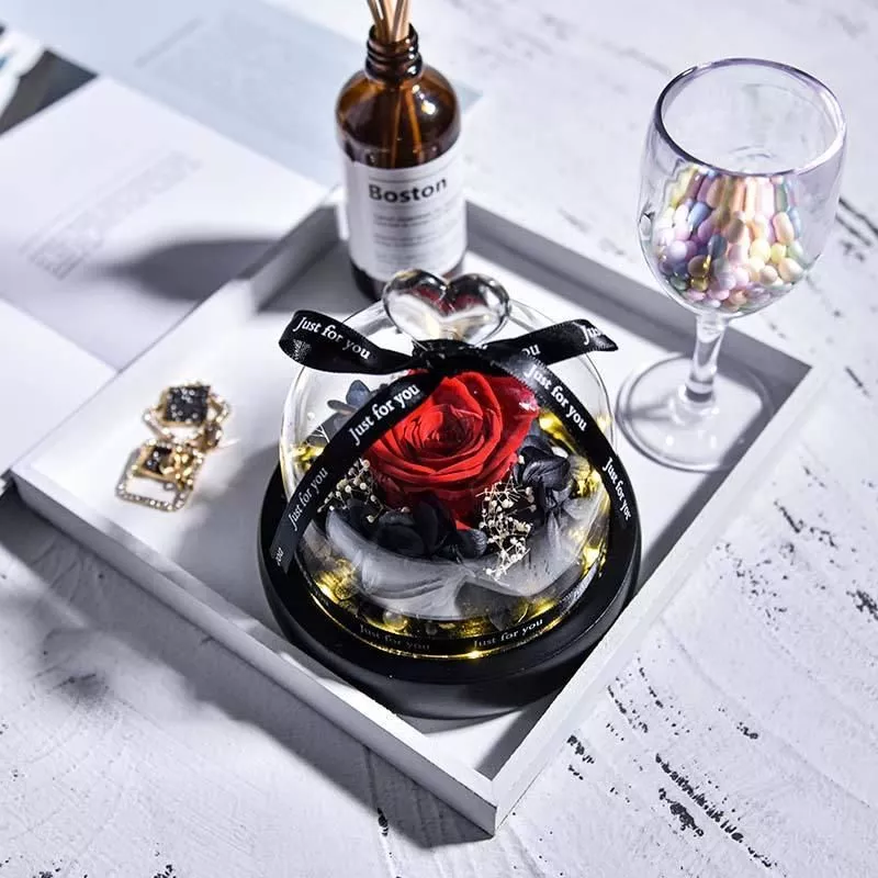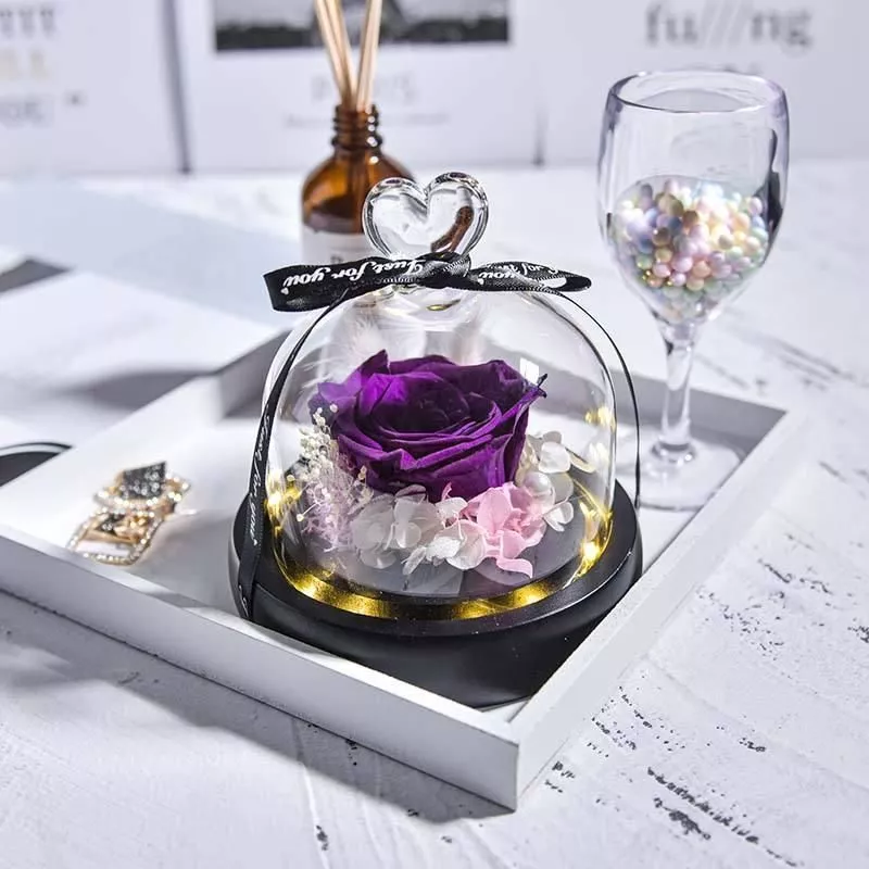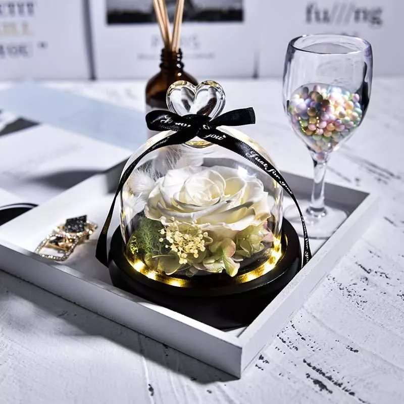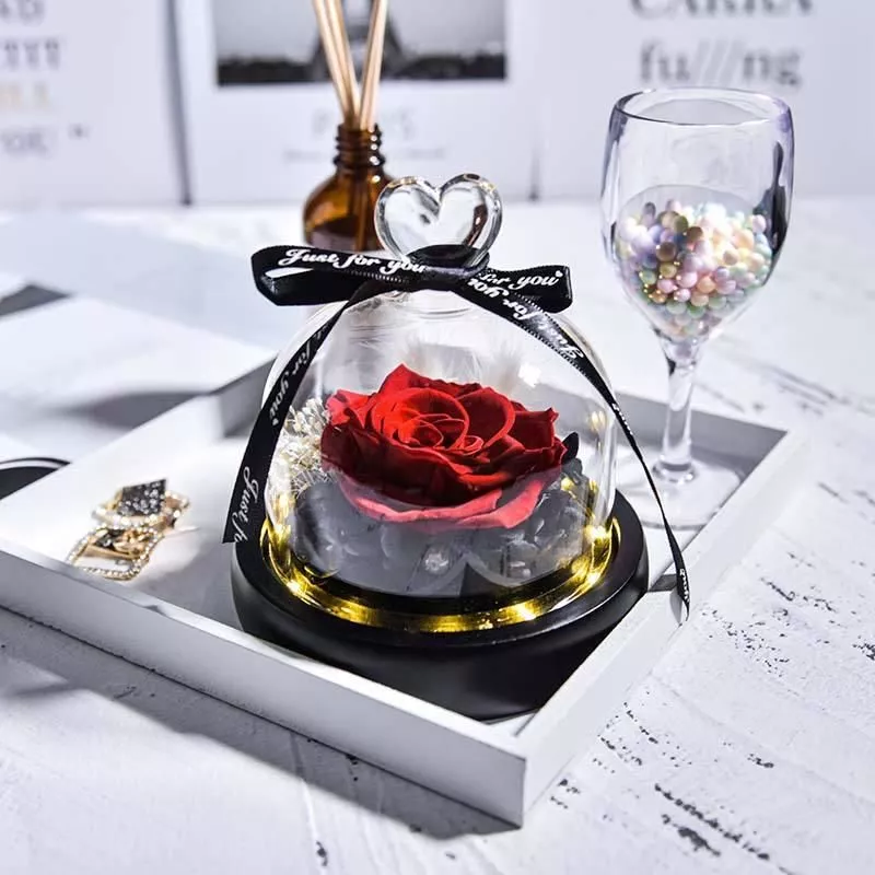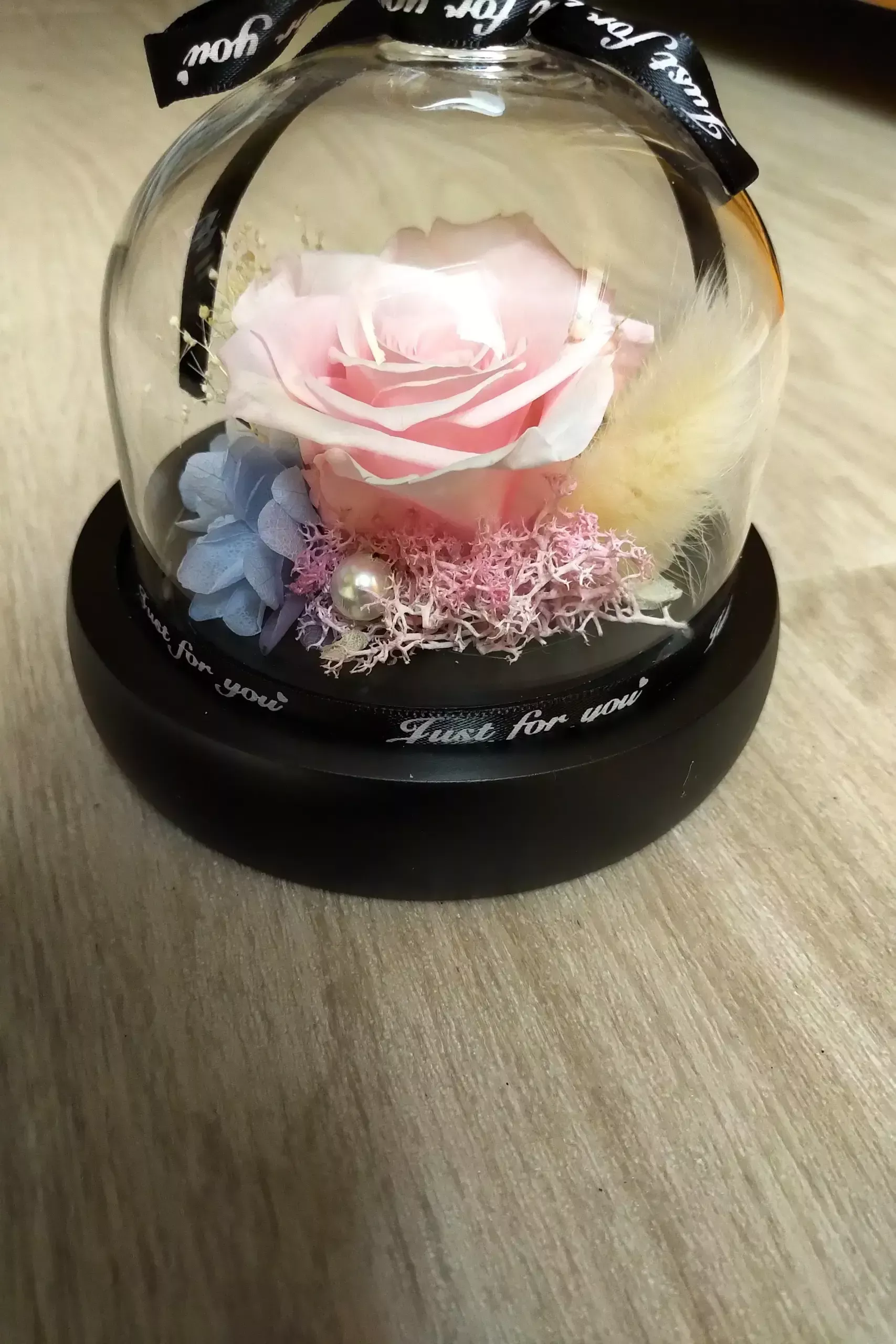 Just got the eternal rose in glass dome, and it's even more beautiful than I expected. The LED lights really make it stand out.