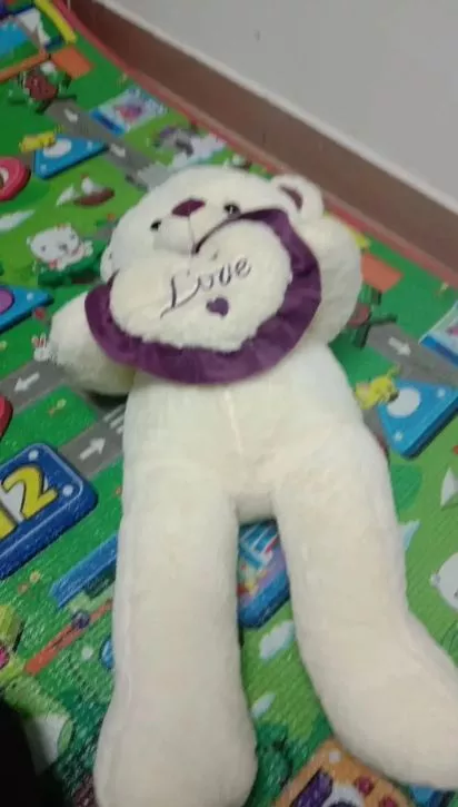 This Teddy Bear is massive and fantastic, just as described!! It's incredibly soft, adorable, and well-made. I highly recommend it! Thank you, seller, for your excellent service!