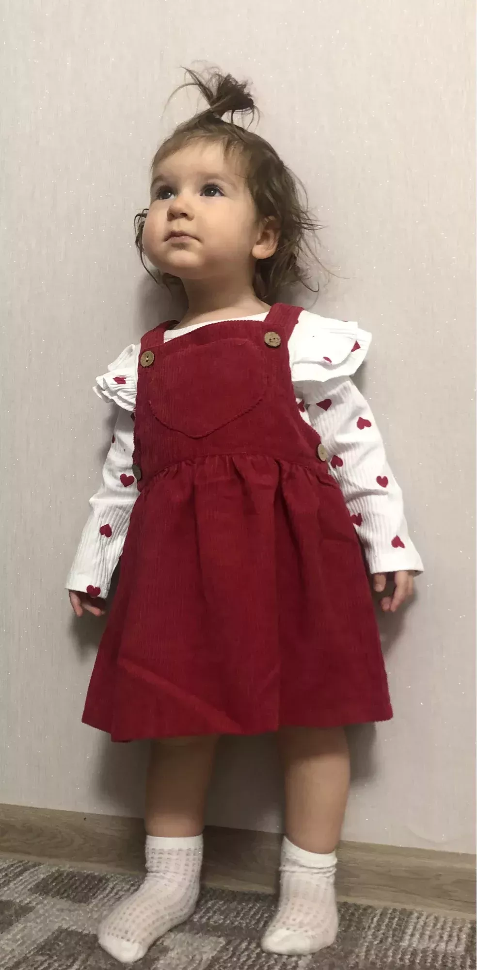 Ideal for Valentine’s Day celebrations, family gatherings, or just a cute everyday look, this outfit is versatile and perfect for any occasion where you want your little one to look her cutest. Whether it’s for a photo shoot or a family get-together, this outfit will make your baby girl the star of the show.