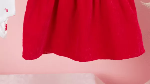 Make your baby girl’s first Valentine’s Day unforgettable with our adorable two-piece outfit. The set includes a heart-patterned, white long sleeve O-neck romper and a charming red corduroy suspender skirt, perfect for creating memorable moments. Designed with love and care, this outfit is not only stylish but also comfortable, ensuring your little angel looks her best on this special day.