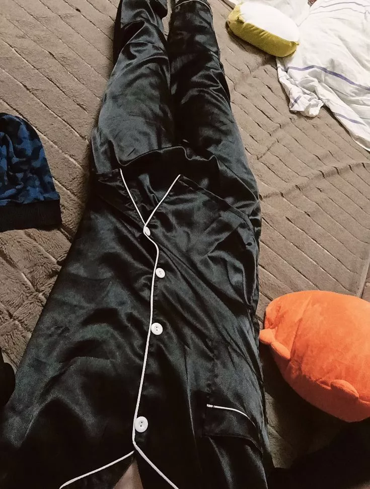 This is a good quality pajama. It's a nice deep navy color and made of very thin, silky material, making it suitable for summer. It's a great buy.