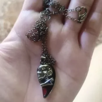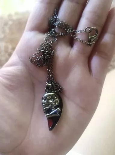 My wife is smitten with this necklace. While she may have had a past fascination with the gothic lifestyle, it seems it never truly leaves someone. It looks fantastic on her.