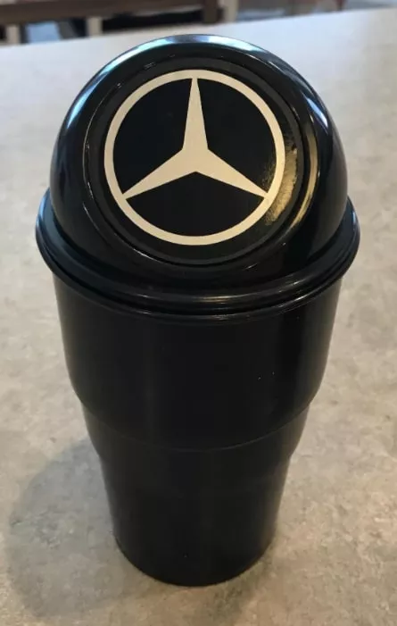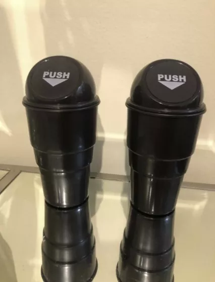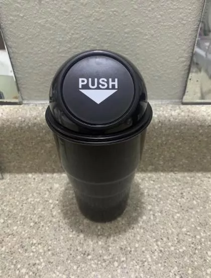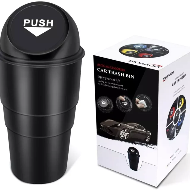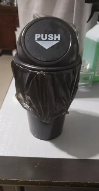 I always use a small trash bag in my car. My husband hates to have a trash bag. I bought a set of these compact trash cans. The size is perfect for a cup holder. The size allows for fairly large pieces of paper, wrappers, and other trash. Press the opening for easy disposal. When full, empty the contents and rinse the plastic as needed. Even my husband loves the design, convenience, and tidy appearance. So, we both approve.