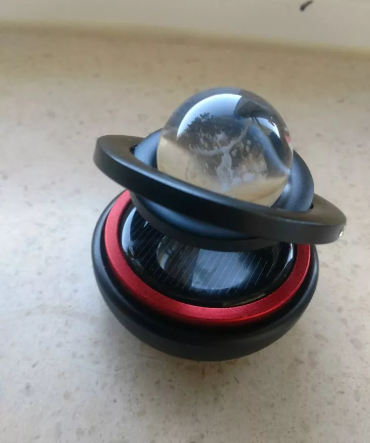It has a lovely appearance, though the packaging wasn't perfect for protection. When I unpacked it, the sphere fell off and got slightly damaged. I haven't seen it rotate yet, but I'm looking forward to witnessing it in action once it gets some sunlight.