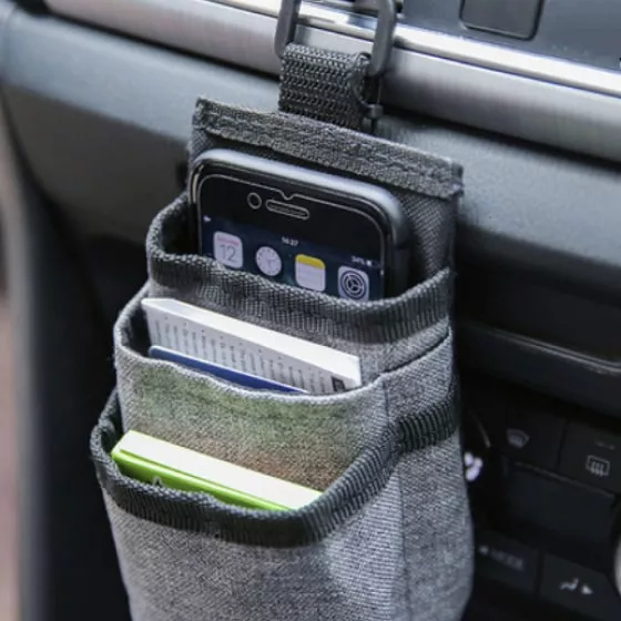 Keep things nice and tidy, from your phone to keyfob to gum, all in one clip-on solution. Our Multifunctional Cloth Phone Bag makes it possible to free up your cup holders and center console — for all you need right within arm’s reach.