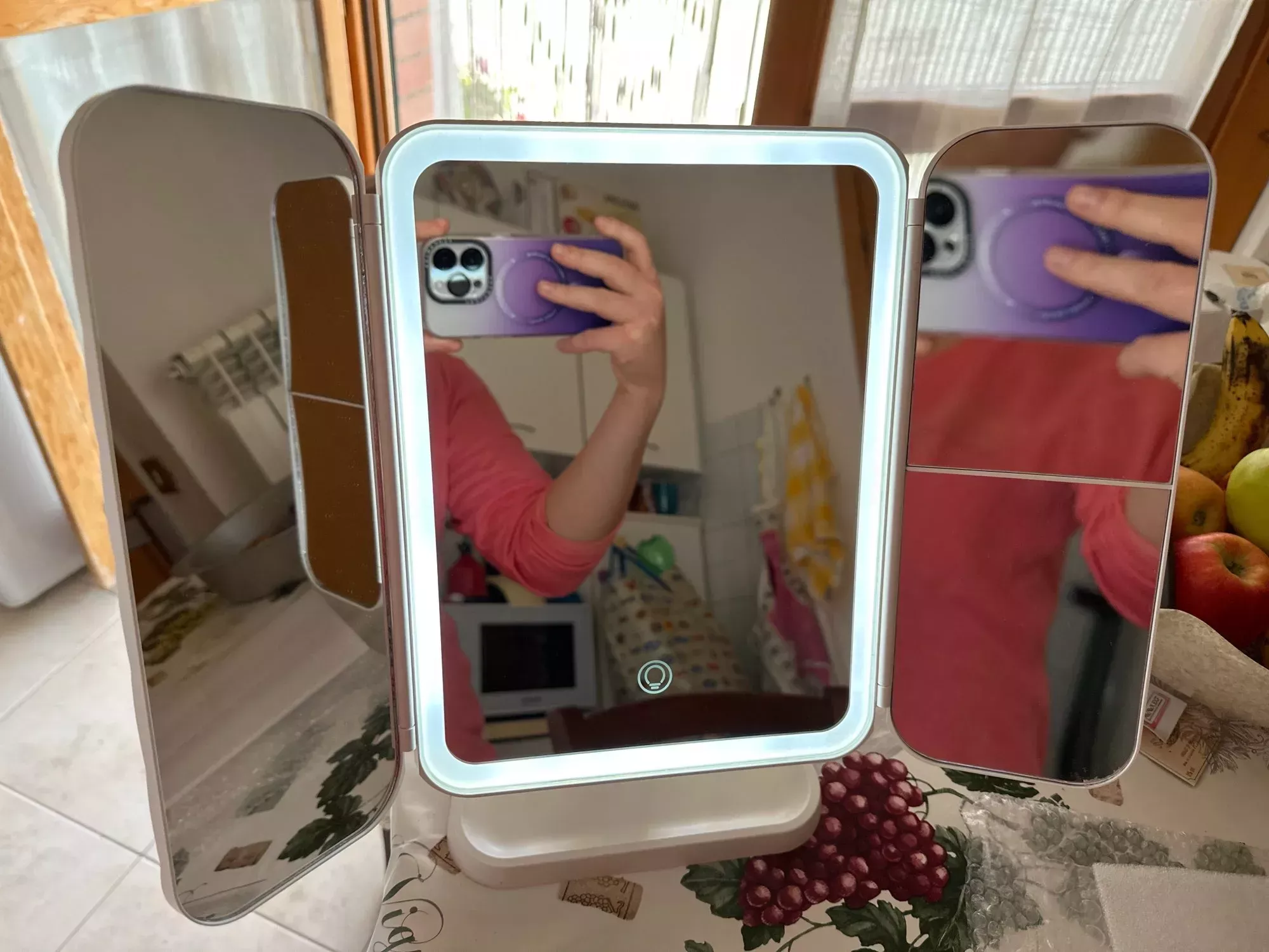 Decent mirror with good lighting, though I found the touch control a bit sensitive. It's still very useful for detailed makeup work.