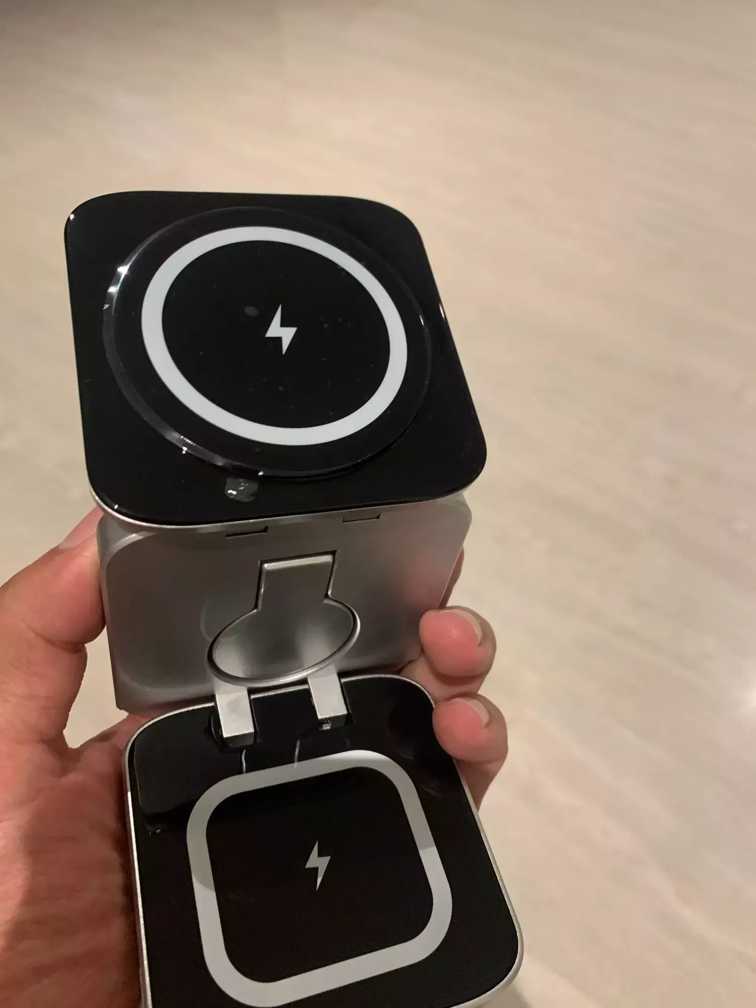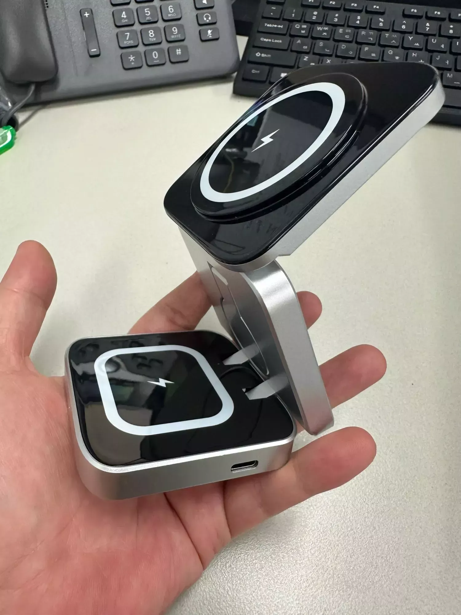 This charger is ideal for everyday use, whether at home, in the office, or while traveling. Its foldable design makes it incredibly portable, allowing you to keep your devices charged and ready to go wherever you are. Perfect for a clutter-free desk or a minimalist nightstand, this charger is the epitome of convenience and style.
