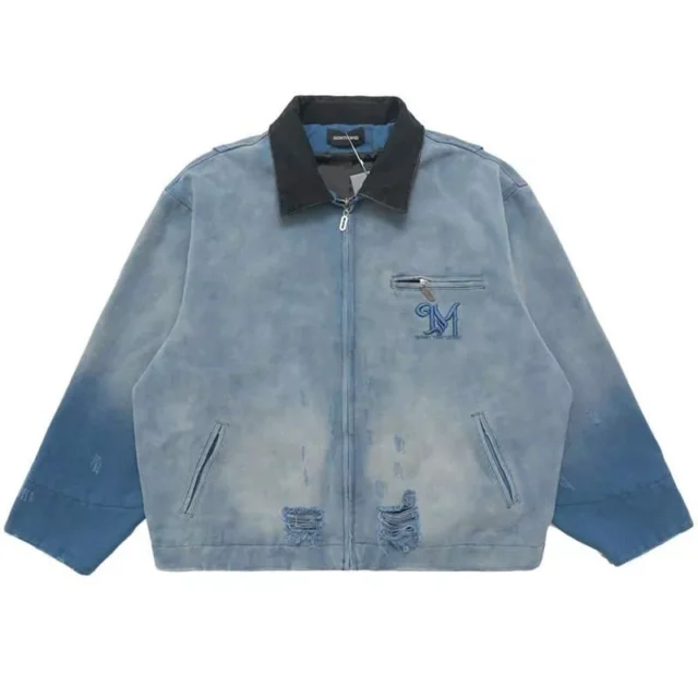 With its durable cotton blend, classic single-breasted closure, and timeless turn-down collar, this jacket offers the perfect mix of vintage appeal and contemporary design. The distressed and washed finish, alongside the edgy hole decorations, gives it an authentic retro look that doesn’t sacrifice quality for style. Regular in fit but extraordinary in personality, this workwear jacket comes in versatile black, gray, and blue colors, ready to complement any outfit or mood.