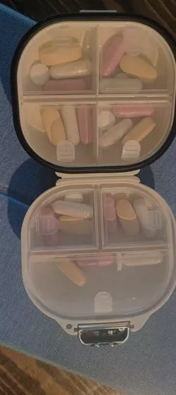 I lost my previous pill organizer and stumbled upon this one while searching for a replacement. I appreciate the compact size of both cases, which won't take up much space in my carry-on luggage. They are well-made, with ample compartments for different-sized vitamins. What was once a loss turned into a gain when I found this organizer.
