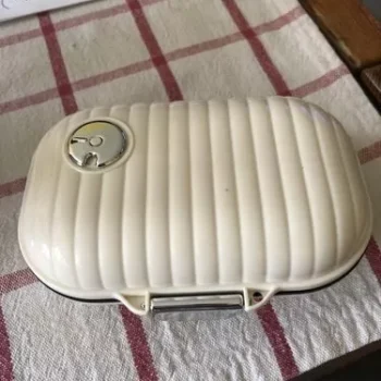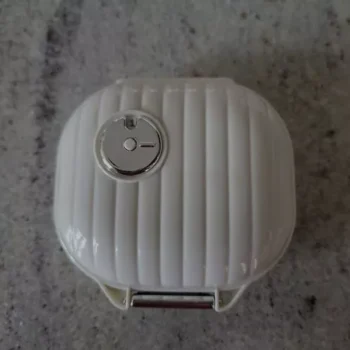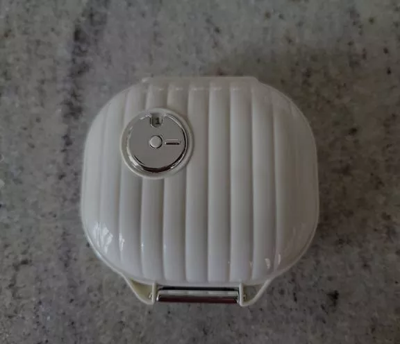 The case's aesthetic appeal, resembling a hard-shell makeup container, is noteworthy. However, the cream-colored hue differs from pure white. The larger exterior designed for medication protection may make it less portable than standard pill holders.