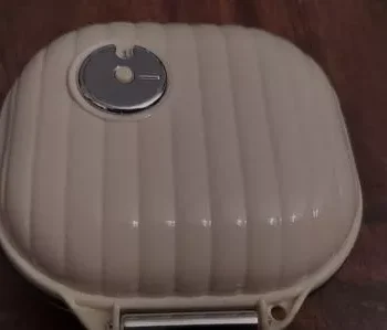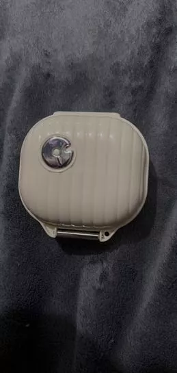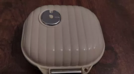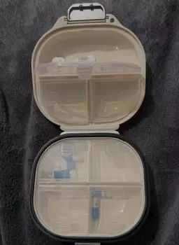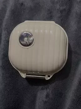 While designed as a travel case, I've found that this pill organizer also effectively keeps humidity out. The exterior resembles a hard shell makeup holder and boasts a cream-colored finish. Its larger exterior may make it less ideal for traditional travel use compared to standard pill holders.