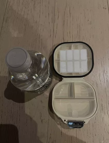 This pill organizer is incredibly convenient. It's small enough to fit anywhere yet spacious enough to hold all my medications, including vitamins and gum. It provides secure storage and easily fits in pockets and bags.