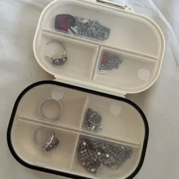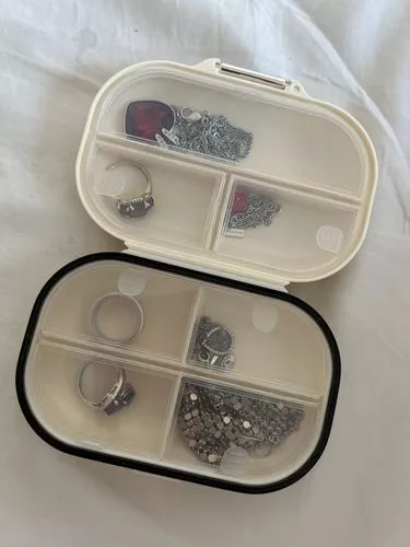 The pill organizer comes in a hard shell case that provides exceptional protection for its contents. It's highly durable and resistant to damage. Additionally, you can repurpose it to store small items like rings or jewelry if desired.