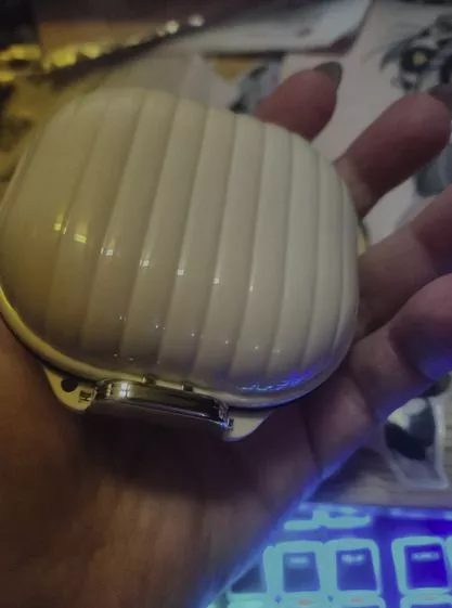 The case has an appealing hard-shell appearance, reminiscent of a makeup holder. However, its cream-colored hue deviates from a pure white. Due to its larger exterior designed for medication protection, it may not be as travel-friendly as standard pill holders.